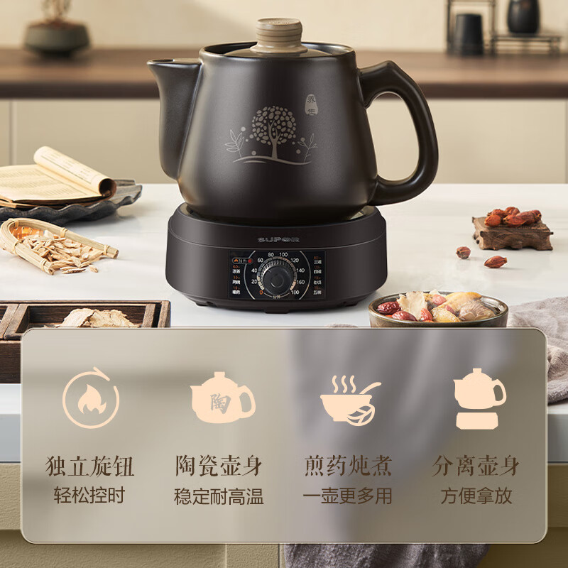 苏泊尔(SUPOR)煎药壶 养生壶中药壶 3L大容量熬药锅分体式陶瓷全自动智能电药壶中药锅带底座家用 SW-30Y06价格:169.00元!