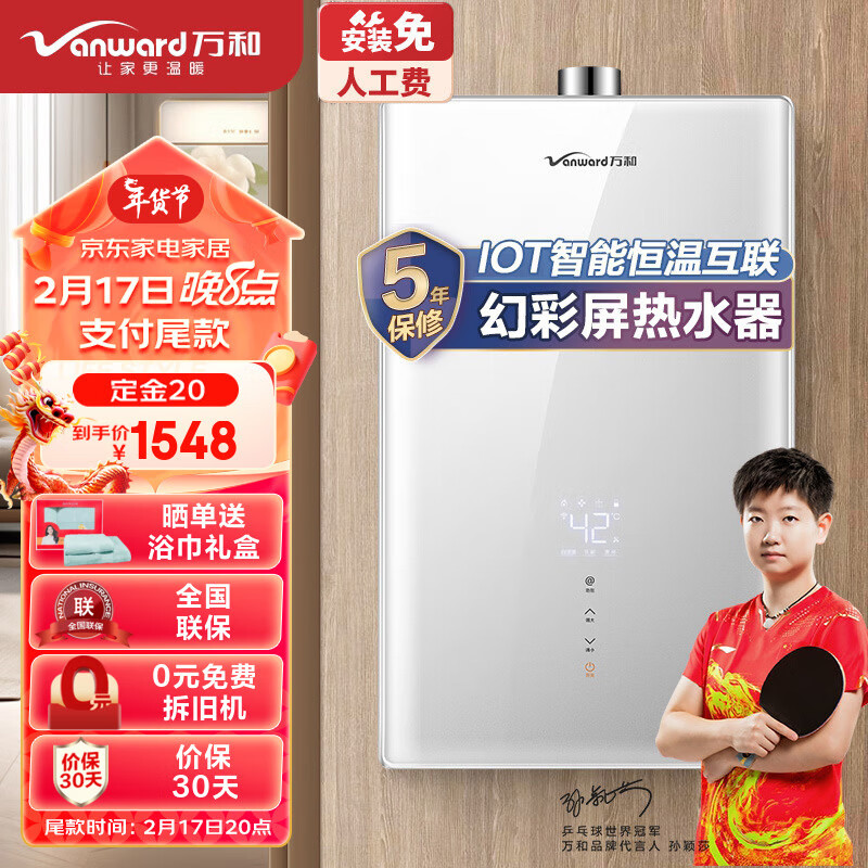 万和(Vanward)16升燃气热水器幻彩屏IOT智能恒温热水器JSQ30-F5D16价格:1598.00元!