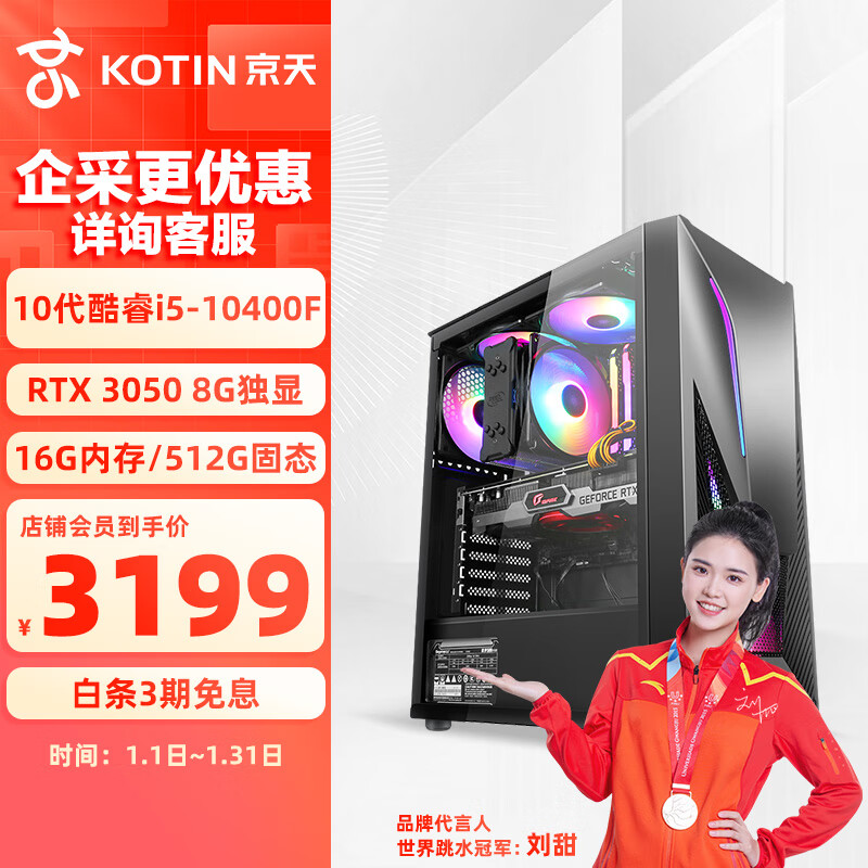 京天 Strike S50 i5-10400F/RTX3050/16G DDR4/512G台式组装吃鸡电脑游戏主机UPC价格:3299.00元!
