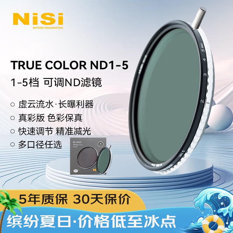 耐司(NiSi)可调nd滤镜 True Color VND1-5档46mm可变nd减光镜真色彩 色彩保真可调ND镜 单反微单相机视频人像价格:498.00元!