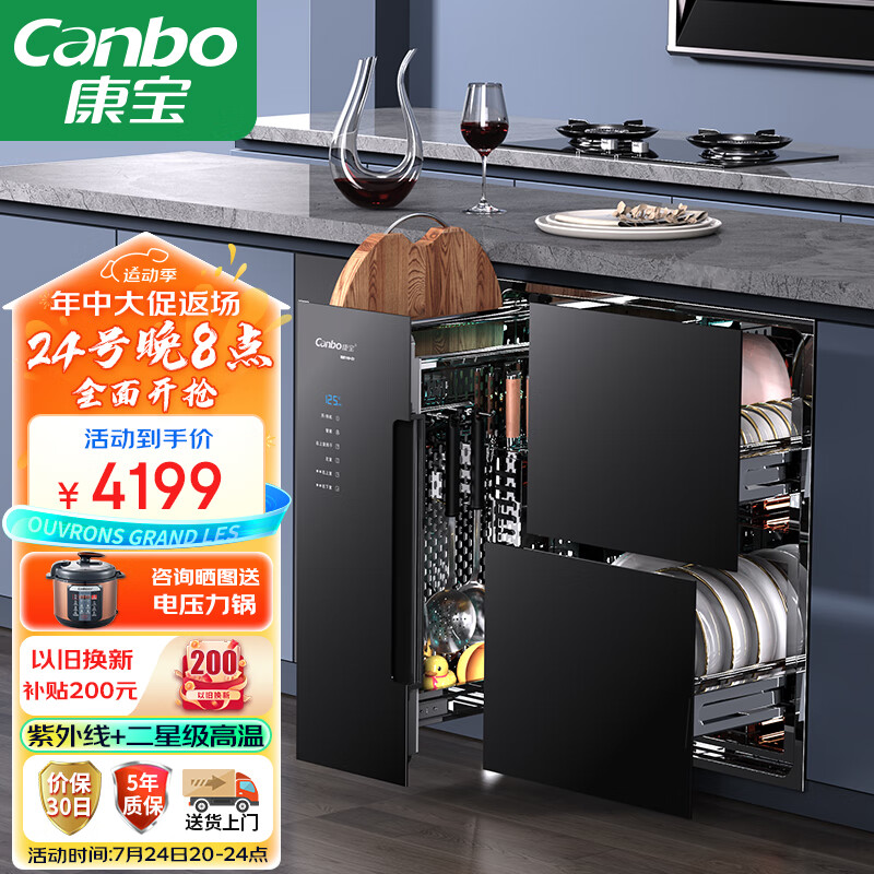 康宝(Canbo)304不锈钢 三层 智能 砧板 消毒柜 嵌入式 家用 厨房碗筷餐具母婴二星高温 消毒碗柜 XDZ110-Z1价格:4599.00元!