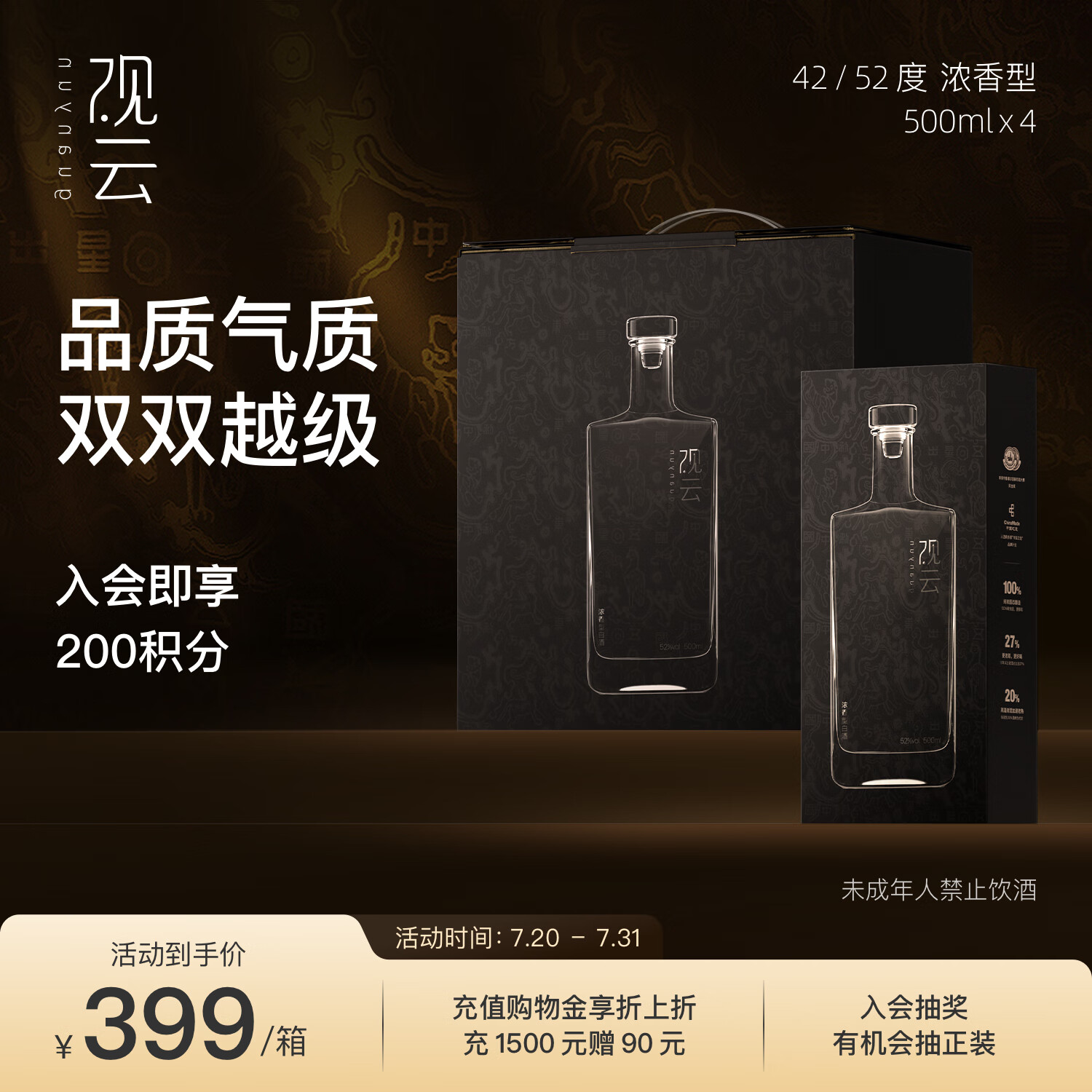 观云出东方 浓香型白酒 42度 500ml*4瓶 整箱装 含礼袋*2 送礼宴请价格:599.00元!