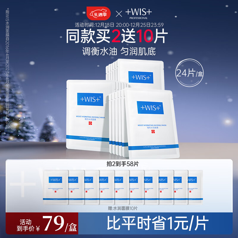 WIS隐形水润面膜24片 多重补水滋润控油保湿修护提亮肤色面膜护肤品价格:98.00元!