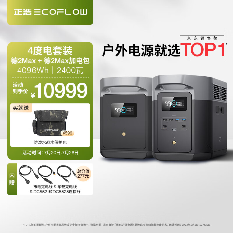 ECOFLOW正浩【4度电套装】移动户外电源220V 2400W大功率 车载自驾露营停电应急储能备用电源价格:10999.00元!