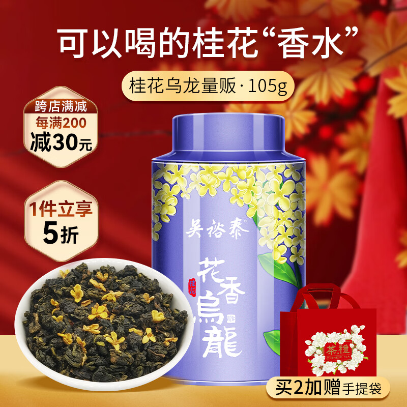 吴裕泰茶叶 花香乌龙茶 105g/罐 桂花乌龙茶 中华老字号价格:189.00元!