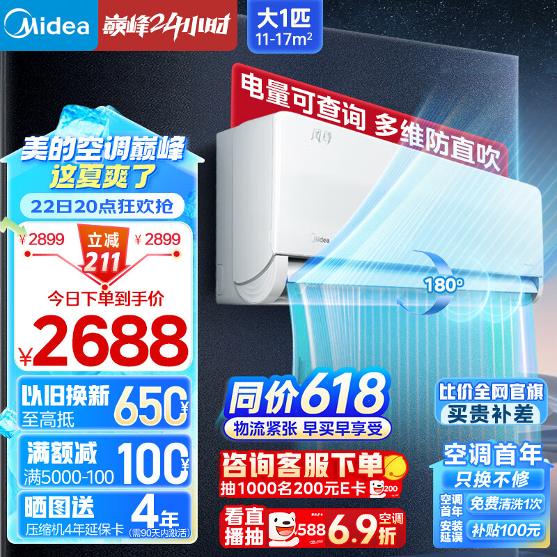 美的(Midea)空调挂机 大1匹 风尊 科技版 新一级能效 变频冷暖 独立除湿 壁挂式空调 智能家电KFR-26GW/N8MXC1价格:2688.00元!