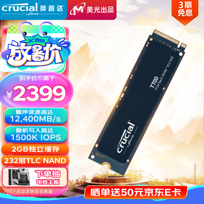 Crucial英睿达 美光2TB SSD固态硬盘 M.2接口(NVMe协议 PCIe5.0*4)读速12400MB/s Pro系列T700 原镁光颗粒价格:2399.00元!