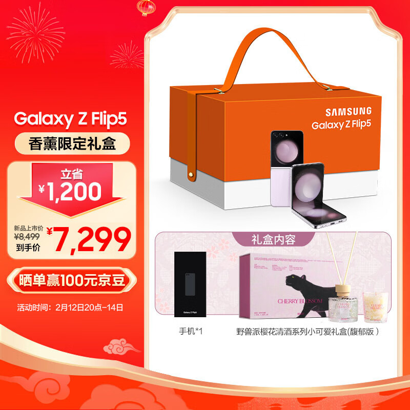 三星 SAMSUNG Galaxy Z Flip5 5G折叠手机 香薰限定礼盒 8GB+512GB 冰玫紫价格:7299.00元!