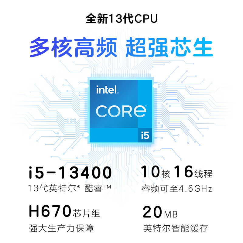惠普HP 星Box商务办公台式电脑主机(13代酷睿i5-13400 32G 1TB固态硬盘 WiFi 注册五年上门)+23.8英寸价格:4399.00元!