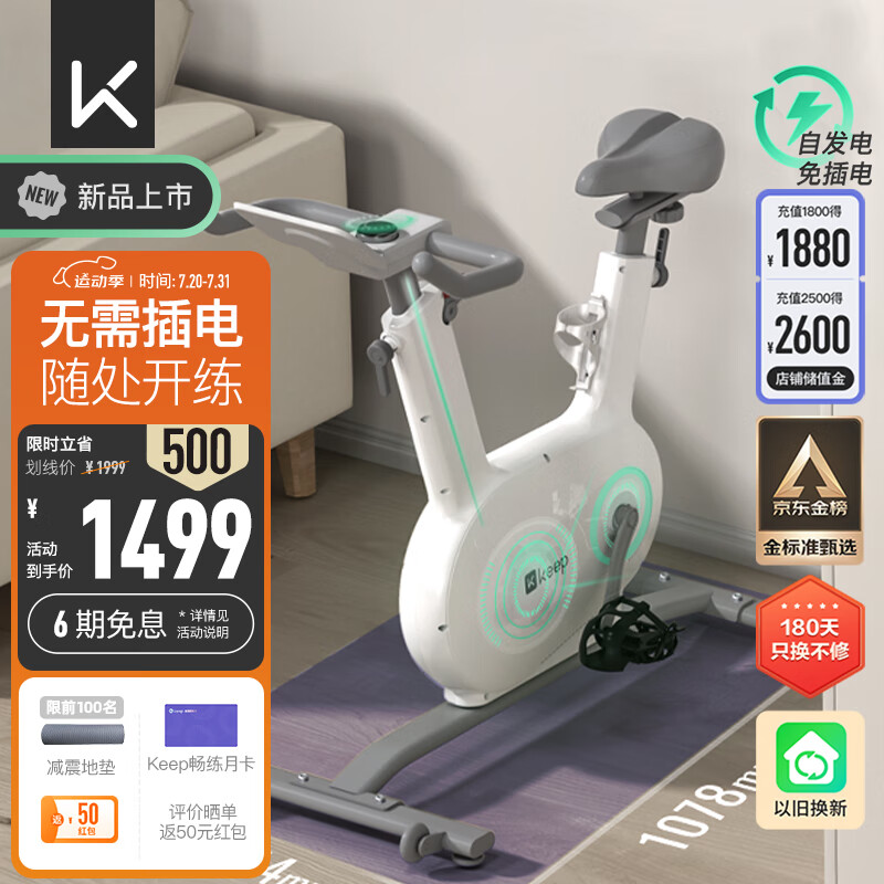 Keep动感单车mini增强版家用室内器械健身 自发电白色款K0103B价格:1499.00元!