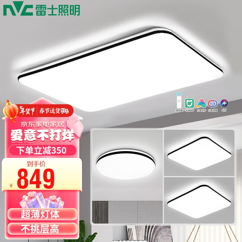 雷士照明(NVC)吸顶灯客厅大灯卧室餐厅灯具全屋套餐三室一厅B主灯智能价格:1199.00元!