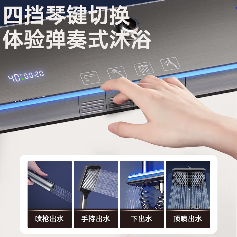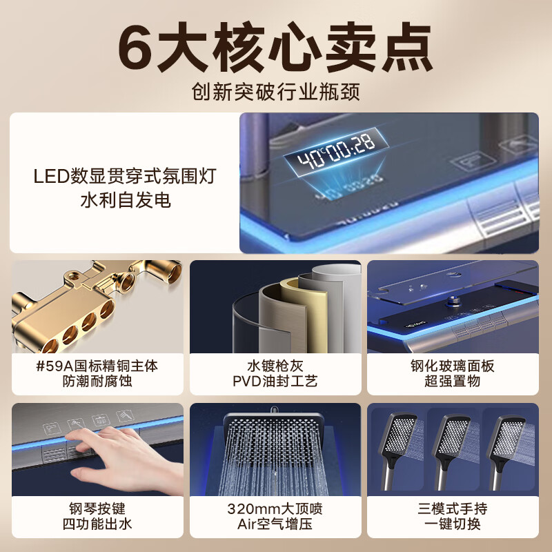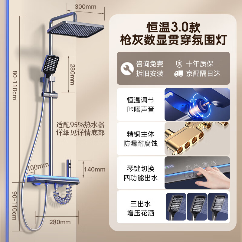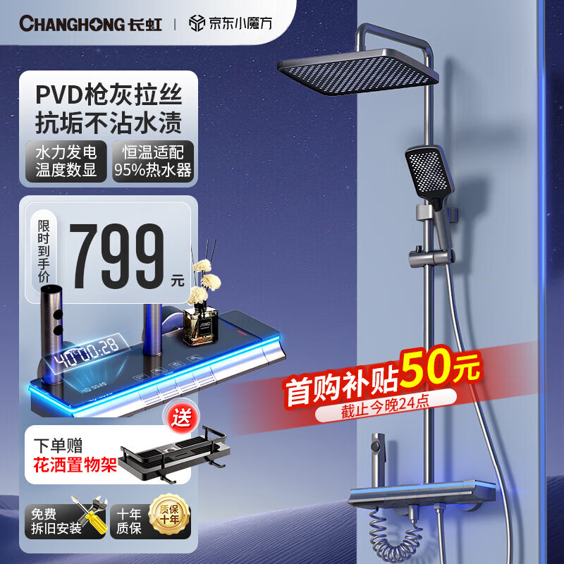 长虹(CHANGHONG)淋浴花洒套装 枪灰色氛围灯数显恒温冷热花洒全套增压全铜龙头价格:919.00元!