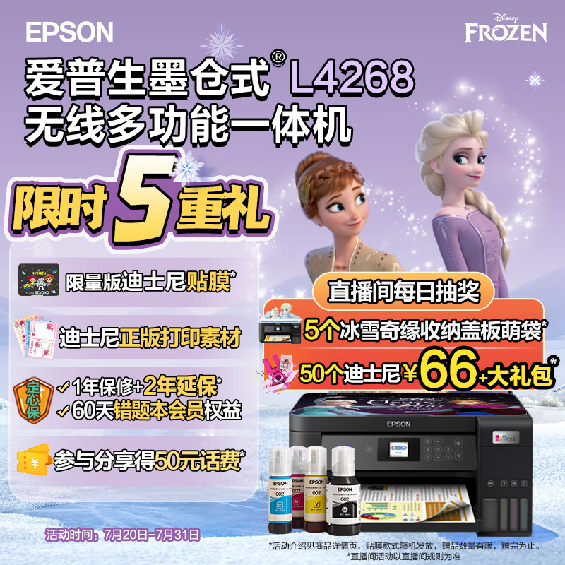 爱普生(EPSON)L4268墨仓式彩色无线多功能一体机 家用打印/办公打印两相宜(打印复印扫描 wifi 自动双面)价格:1499.00元!