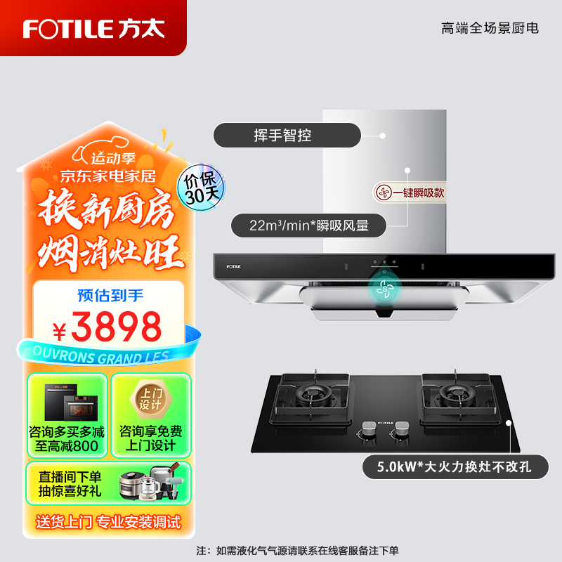 方太抽油烟机 烟灶套装 燃气灶套装欧式顶吸油烟机灶具套装烟机家用 22瞬吸风量EMC5A+TH36B天然气价格:3898.00元!
