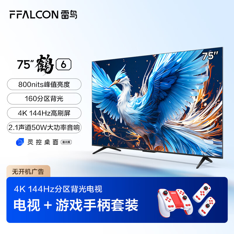 FFALCON雷鸟 鹤6 24款 75英寸游戏电视+运动加加游戏手柄套装 144Hz高刷 4K液晶平板电视机75S575C PRO价格:4898.00元!