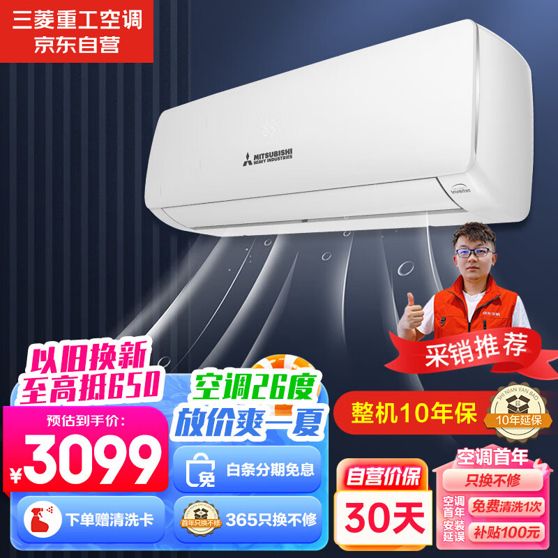 三菱重工 适用11-16㎡ 新三级能效 1匹 变频冷暖 空调挂机智能电辅热远程送风三菱空调SRKQG26以旧换新价格:3099.00元!