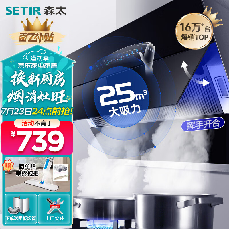 森太(SETIR)B560QC抽油烟机侧吸式脱排自动清洗吸油烟机大吸力家用抽烟机 高温自动清洗 25立方爆吸风量价格:999.00元!