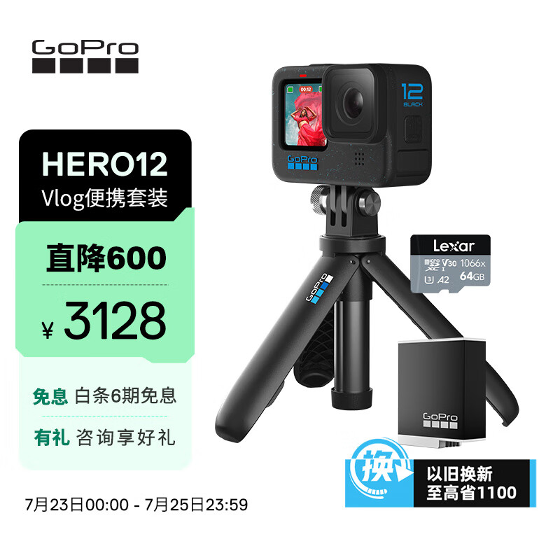 GoPro HERO12 Black防抖运动相机 户外出行潜水防水相机 vlog便携【shorty+Enduro单电+64G卡】价格:3128.00元!