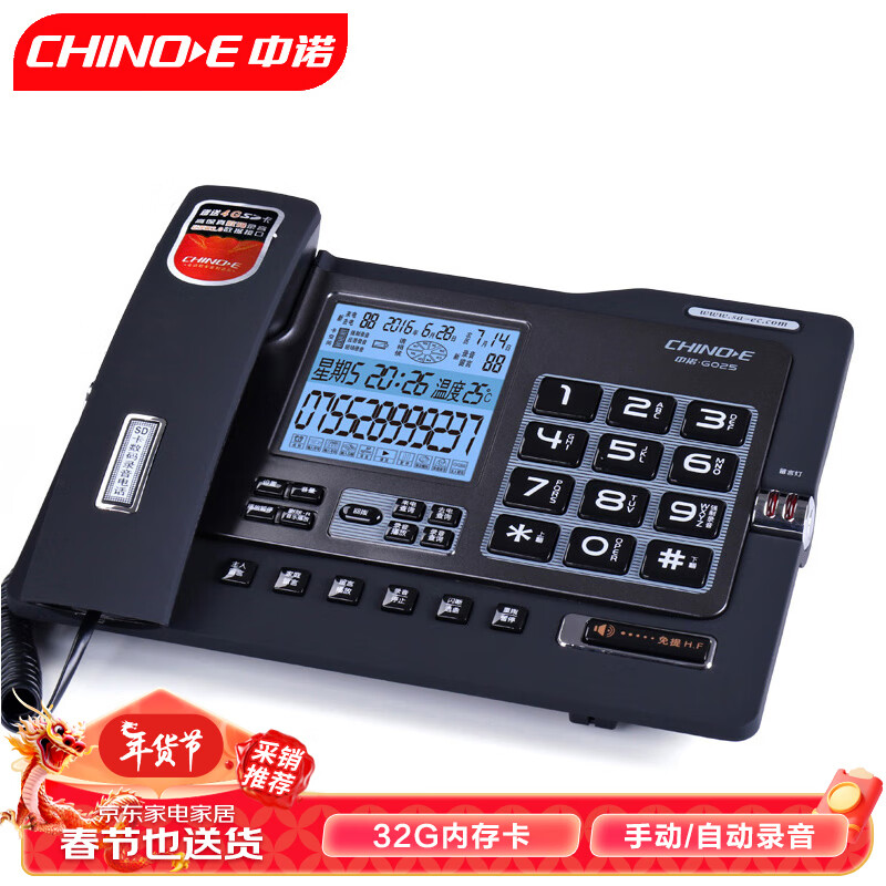 中诺G025豪华32G版录音电话机座机32G存储卡连续录音960小时自动留言答录固定电话坐商务办公黑色价格:319.00元!
