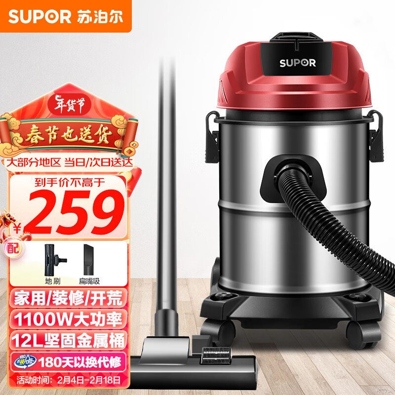 苏泊尔 (SUPOR )桶式吸尘器 干湿吹三用商用家用强劲大吸力吸尘器VCT80P价格:259.00元!