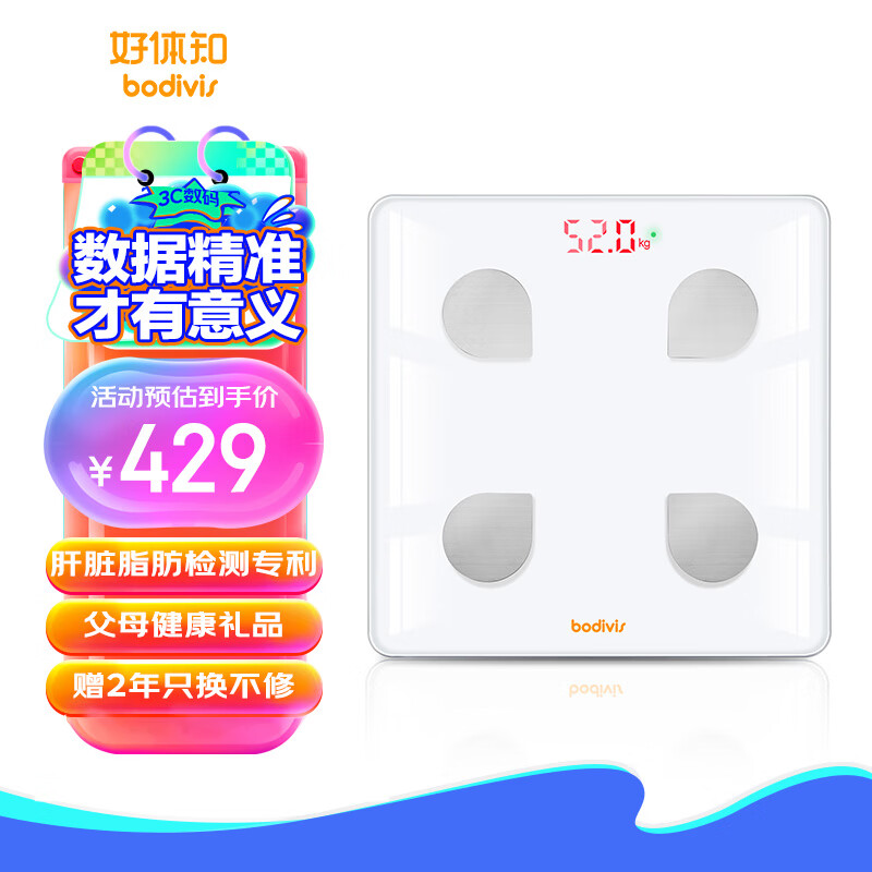 好体知(bodivis)清华同方智能体脂秤 监测肝脏脂肪健康 电子秤 家用称体重秤 人体秤 专利体脂称N1价格:499.00元!