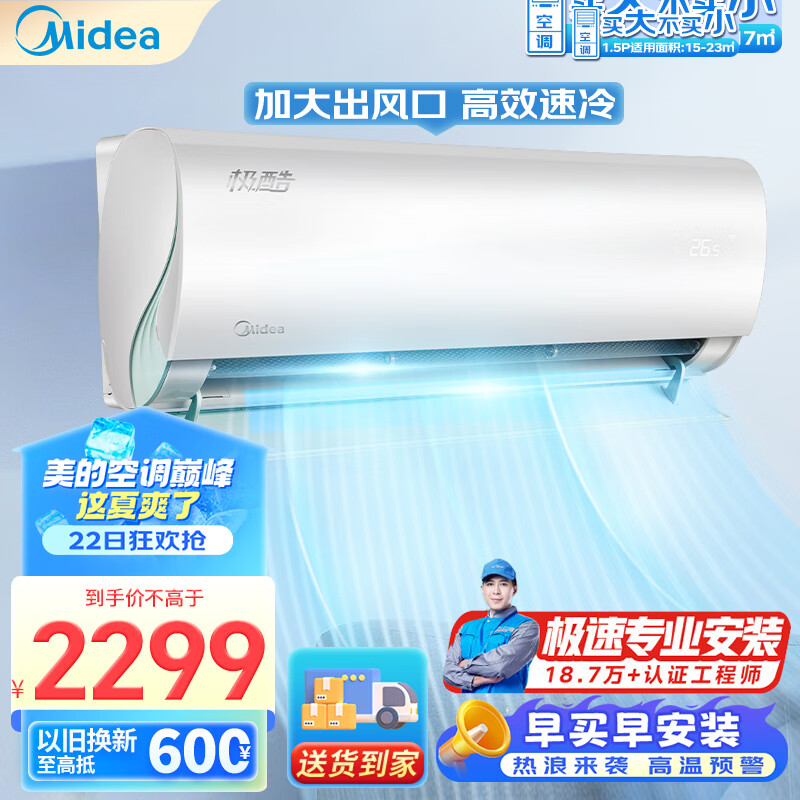 美的(Midea)空调大1.5匹 极酷 新一级能效变频冷暖 自清洁家用卧室壁挂式空调挂机KFR-35GW/N8VHA1Ⅱ价格:2299.00元!