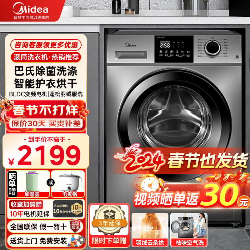 美的(Midea)10公斤家用大容量全自动洗衣机 洗烘一体 wif智控 巴氏除菌 变频电机 羽绒服洗 MD100VC133WY价格:2199.00元!