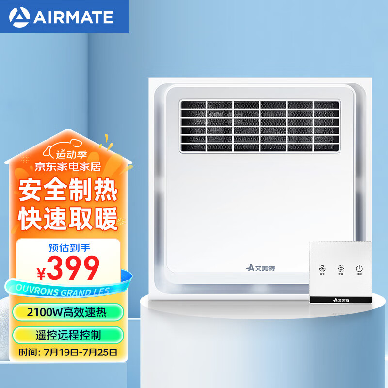 艾美特(Airmate )MV33FR-05风暖浴霸 卫生间浴室暖风机取暖器【遥控控制】价格:399.00元!