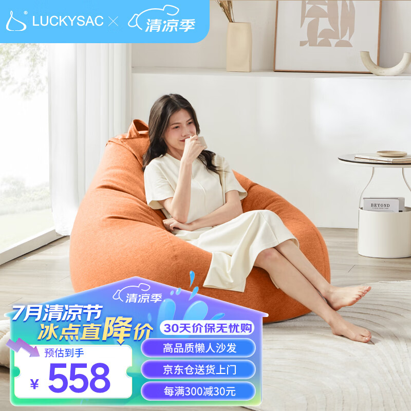 LUCKYSAC懒人沙发豆袋EPP 单人布艺休闲客厅卧室阳台小沙发 尊享款柿子橙价格:618.00元!