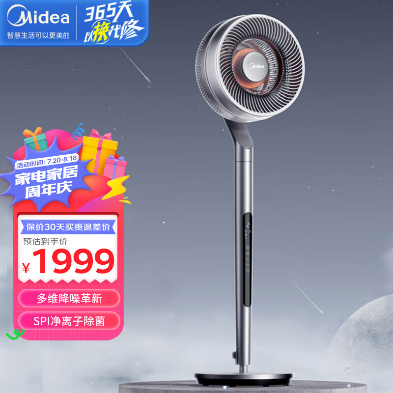 美的(Midea)落地循环风扇离心风轮降噪SPI净离子除菌甲流母婴适用3D立体强力送风FGD24USQ(四季优选)价格:1869.00元!
