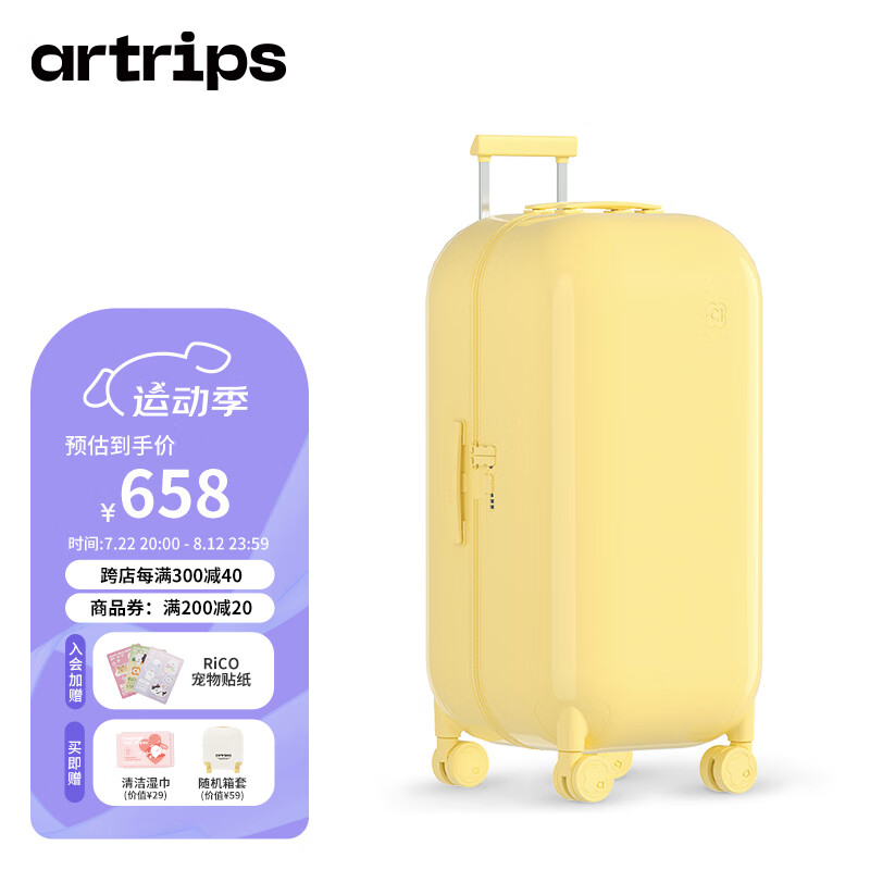 artrips行李箱男密码箱28大号旅行箱拉杆箱女高颜值时尚胶囊系列 暖阳黄价格:808.00元!