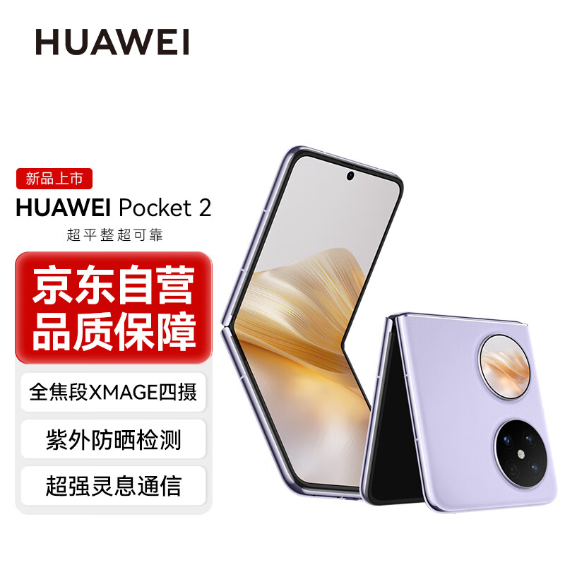 华为Pocket 2 超平整超可靠 全焦段XMAGE四摄 12GB+256GB 芋紫 华为折叠屏鸿蒙手机价格:6999.00元!