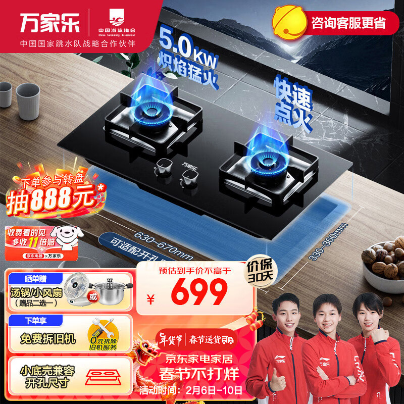 万家乐燃气灶 5.0kw大火力嵌入式台式两用煤气灶液化气双灶具 可适配开孔尺寸 全进风液化气灶JZY-LAY8价格:799.00元!