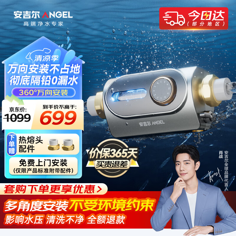 安吉尔【肖战代言】前置过滤器万向安装 实时自动清洗反冲洗40微米 全屋家用自来水净水器J3527-GWG-7000价格:699.00元!