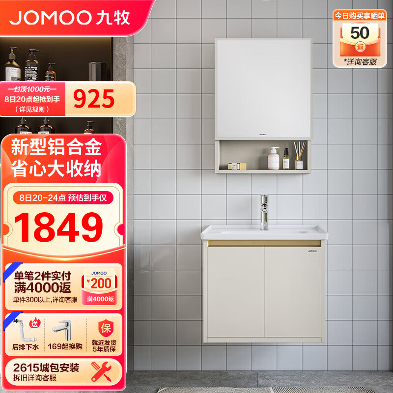 九牧(JOMOO)浴室柜 陶瓷一体盆铝合金悬挂抗菌组合柜海湾灰60cm A2706-716P-2价格:2299.00元!
