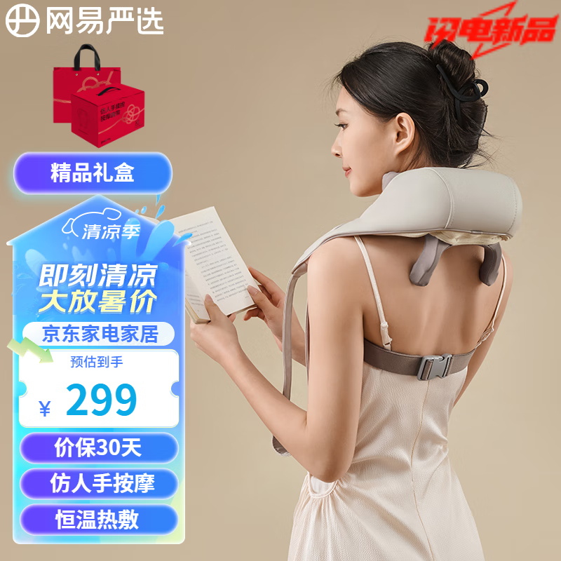 网易严选X5旗舰款仿人手按摩肩带肩颈斜方肌腿腰颈部按摩器按摩仪温感热敷 浅棕色礼盒款 节日礼物价格:429.00元!