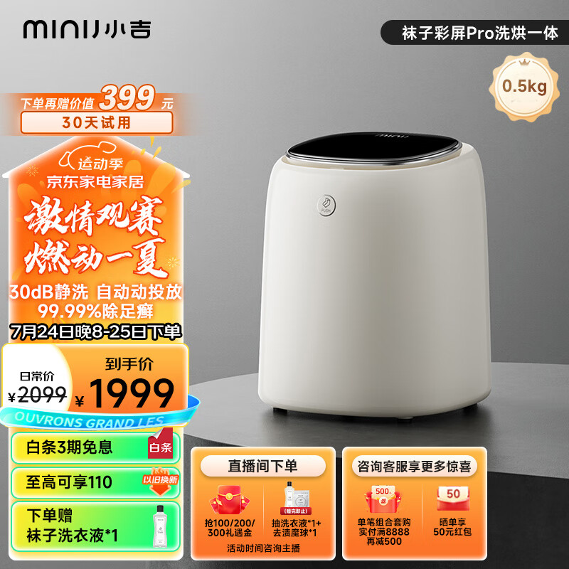 小吉(MINIJ)0.5kg袜子洗衣机除菌洗袜子专用小型迷你彩屏洗烘 去足癣菌 S10-M2 pro价格:2099.00元!