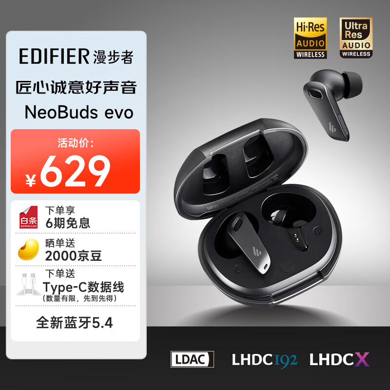 漫步者(EDIFIER)NeoBuds Evo 真无线圈铁降噪耳机 蓝牙耳机 降噪运动耳机 适用苹果小米华为 暗影黑价格:629.00元!