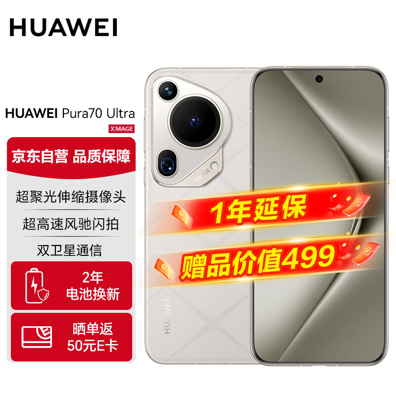 华为(HUAWEI)Pura 70 Ultra 星芒白 16GB+1TB 超聚光伸缩摄像头 超高速风驰闪拍华为P70手机价格:9999.00元!