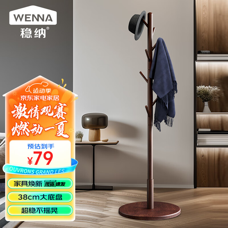稳纳实木衣帽架衣架实木落地挂衣架卧室衣服架胡桃色升级圆底款8003价格:109.00元!
