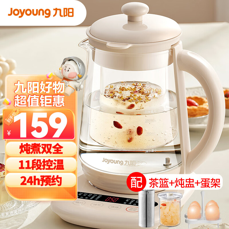 九阳(Joyoung)养生壶玻璃花茶壶 1.5L 12大功能11档控温 电水壶热水壶烧水壶K15D-WY123(茶炖)价格:159.00元!