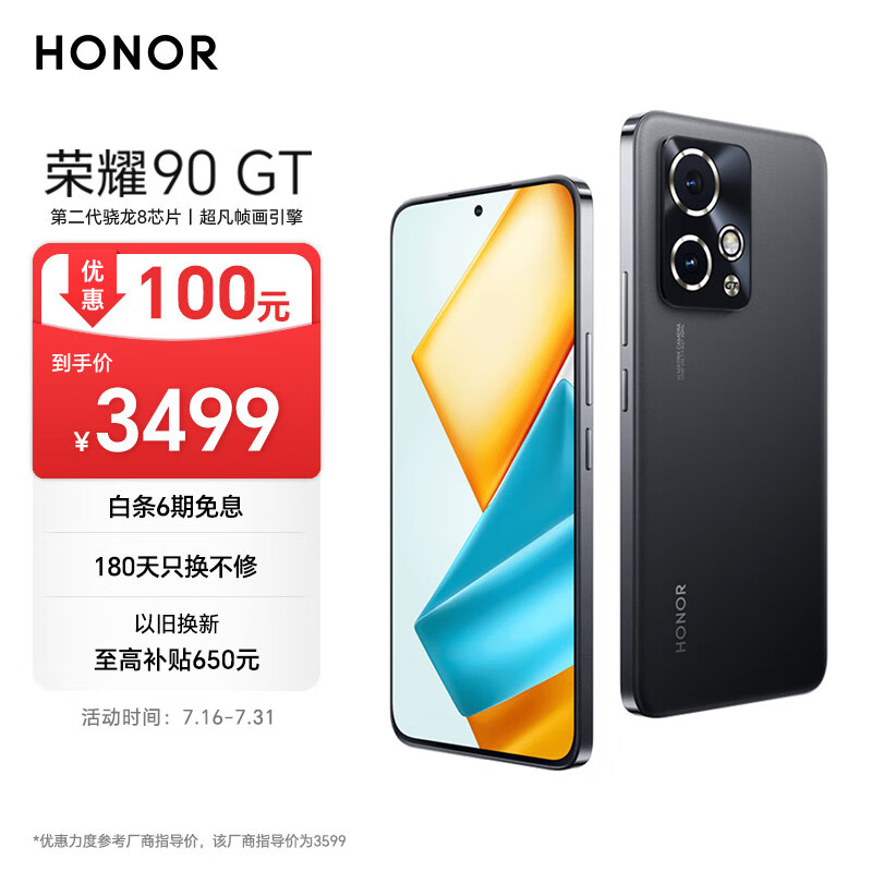 荣耀90 GT 第二代骁龙8旗舰芯 荣耀绿洲护眼屏 5000mAh轻薄长续航 OIS 超大内存24+1T 星曜黑 5G直屏价格:3499.00元!