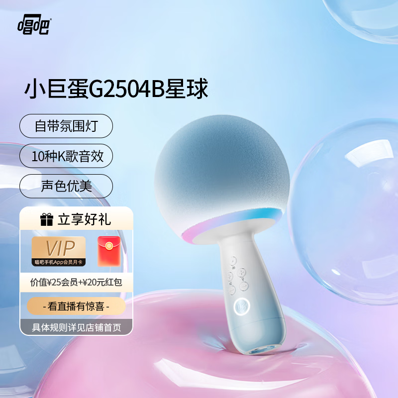 唱吧小巨蛋麦克风音响G2504B星球 无线K歌麦克风 话筒音响一体 智能降噪高音仿啸叫 生日礼物价格:529.00元!