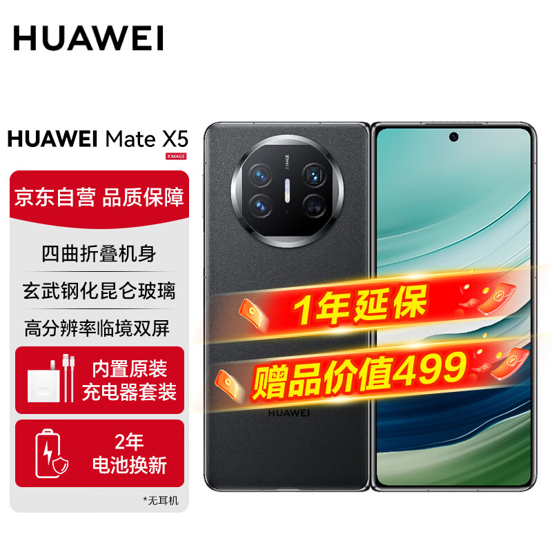 华为(HUAWEI) Mate X5 折叠屏手机 12GB+256GB 羽砂黑价格:11399.00元!