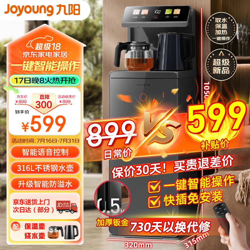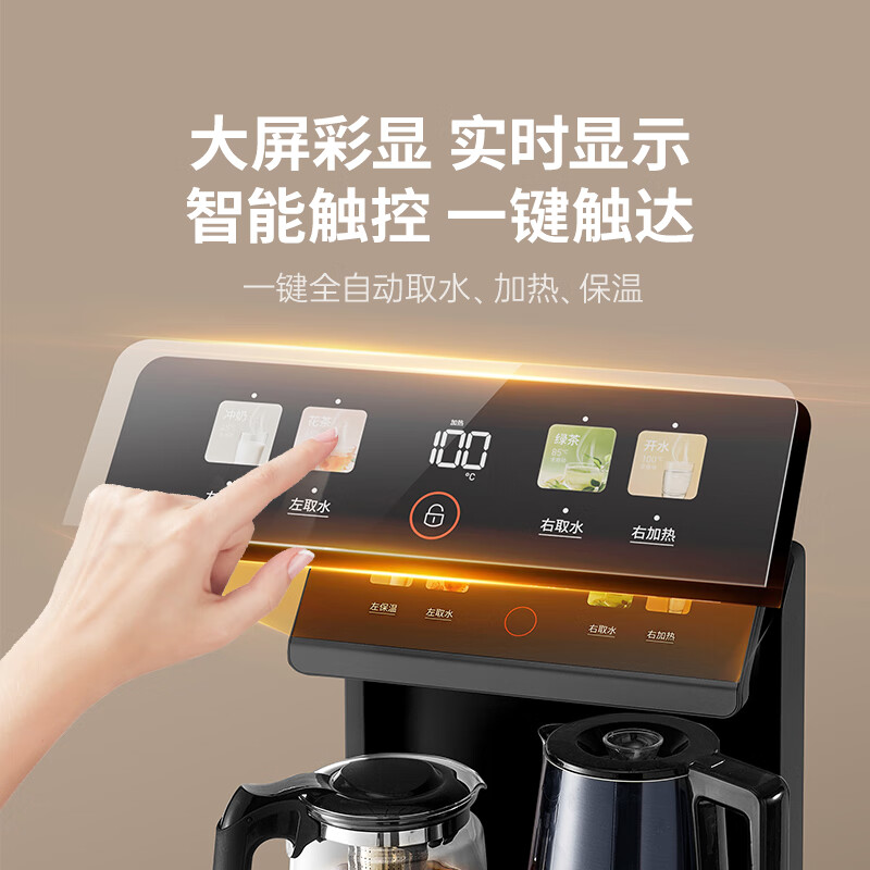九阳(Joyoung)家用茶吧机彩色触控智能语音预约大屏抗菌管路下置水桶饮水机 双温双显双出水口 【温热款】WH100S价格:599.00元!