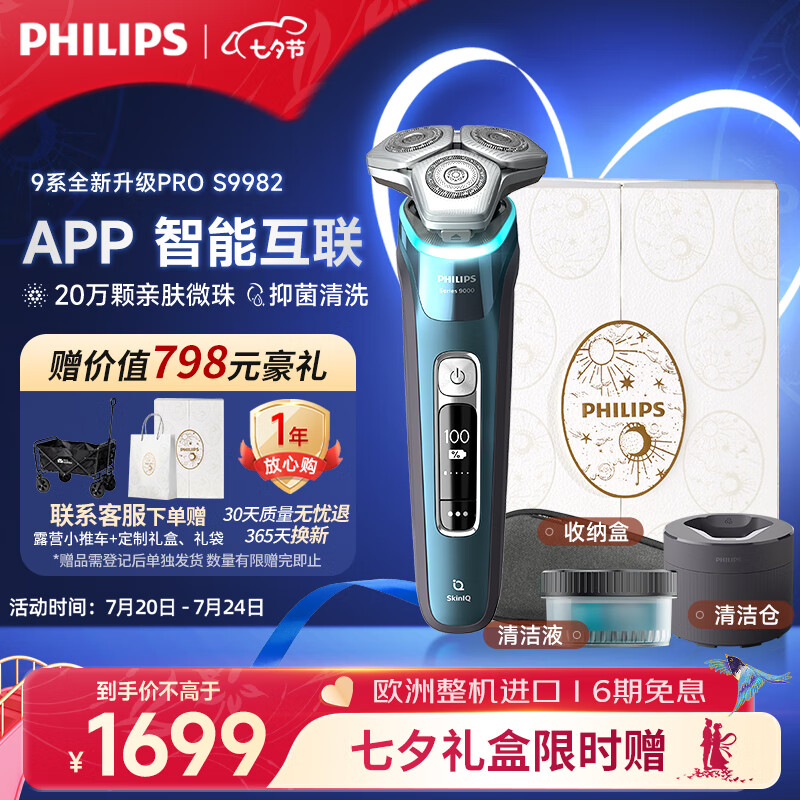 飞利浦(PHILIPS)男士电动剃须刀蜂巢9系Pro SkinIQ科技【整机荷兰进口】【送老公/男友 七夕情人节礼物】S9982价格:1699.00元!
