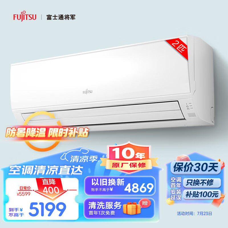 富士通 21-30㎡适用 新2级能效 2匹 大挂机大风量空调挂机 以旧换新ASQG18KLCA 白色 (KFR-50GW/Bpkla)价格:5199.00元!