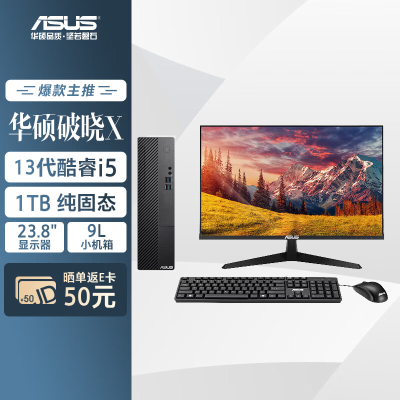 华硕破晓X 2023 个人办公家用商用台式机电脑整机(13代intel i5-13400 16G 1TBSSD? 小机箱)23.8英寸显示器价格:3999.00元!