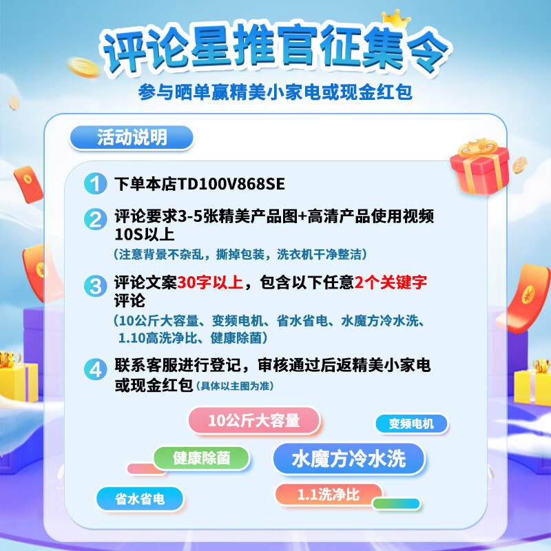 此款小天鹅TD100V868SE外观我比较的喜欢,质量特别的好,包装很用心,整洁美观,给人一种被重视的感觉。