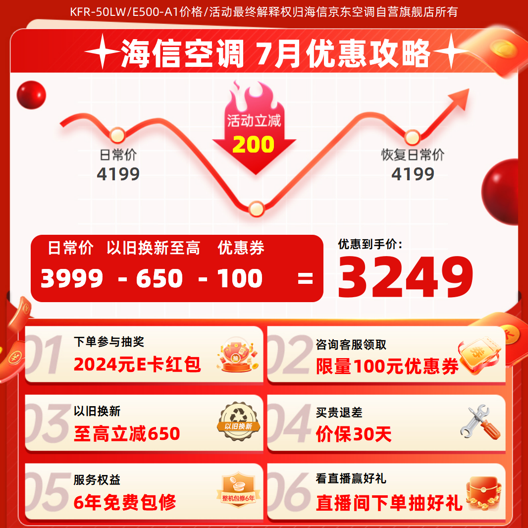 海信(Hisense)2匹 速冷热 新一级能效变频超大风量柔风防直吹自清洁智能 立式客厅空调柜机 KFR-50LW/E500-A1价格:3999.00元!